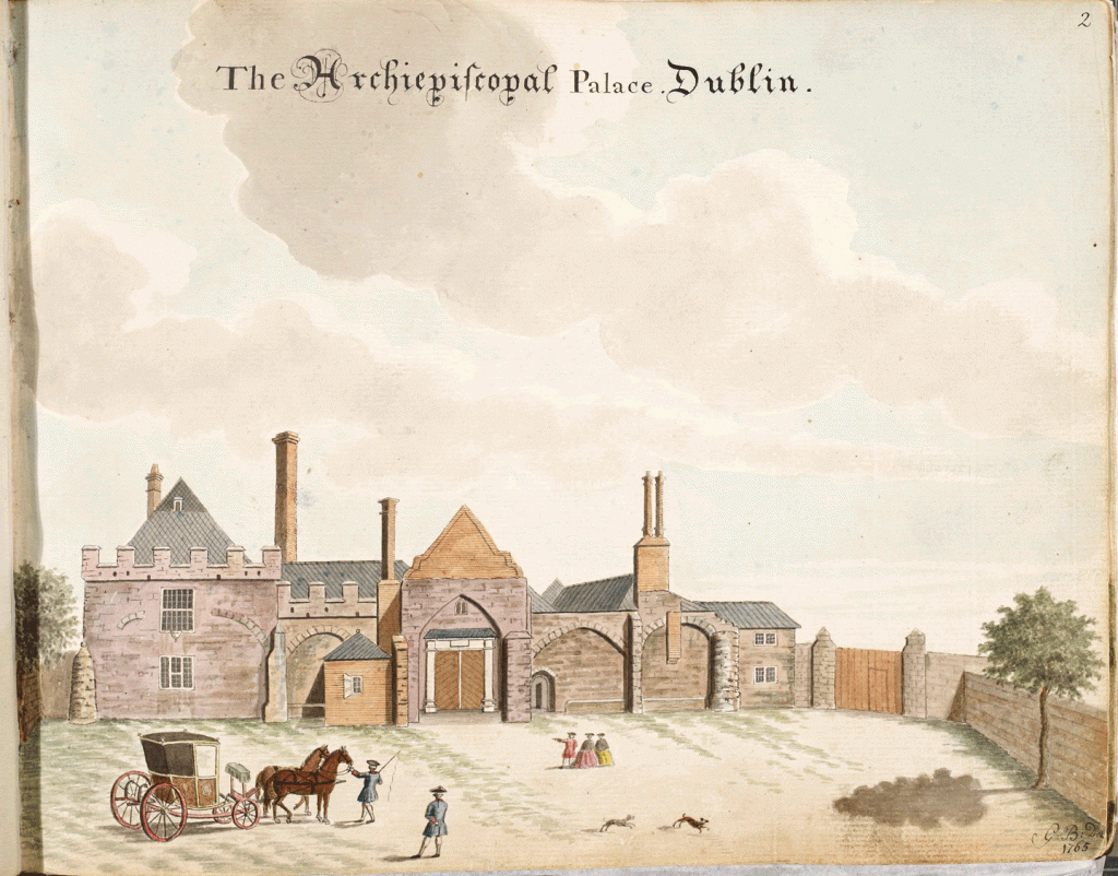 “most of the main garda building has been identified as the medieval palace of St Sepulchre, the residence of the Archbishop of Dublin throughout the medieval period and into the 19th century. The original palace, within a walled precinct, took the form of a quadrangle (rectangular courtyard) and a recent examination by Danielle O’Donovan reveals that a large section of this medieval quadrangle still survives, incorporated within the existing buildings.”